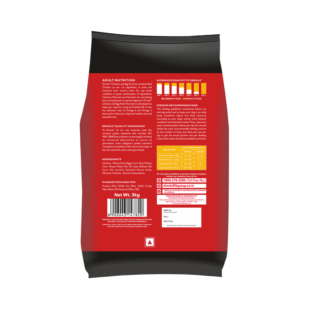 The daily feeding quantity varies according to the age, activity, size and temperament of your dog. You can serve your pet with recommended amount by dividing it with number of times you feed daily.