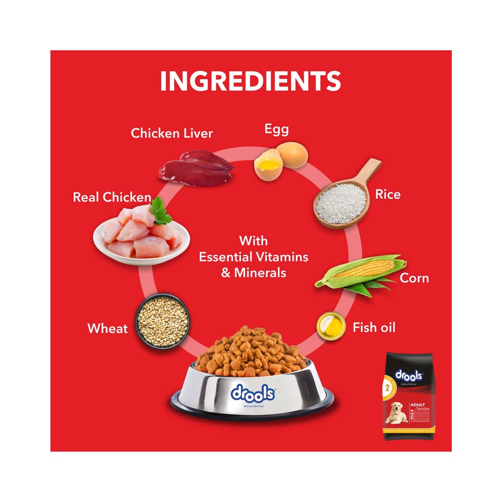 Real Chicken, Eggs, Hydrolysed Chicken Liver, Carrots, Pumpkins, Peas, Spinach, Apples, Coconut Oil, Ashwagandha, Basil, Moringa, Amla, Turmeric, Ginger, Milk Thistle, Giloy, Organic Minerals & Vitamins (Vit E, Vit A, Vit C, Vit D3, Vit B1, Vit B2, Vit B6, Choline, Folic Acid)