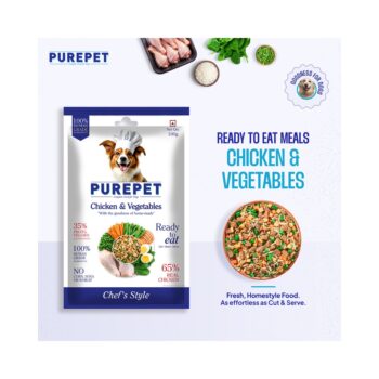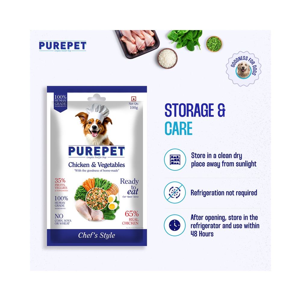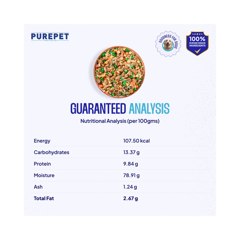 Crafted with farm-fresh, human-grade ingredients and expertly formulated by pet nutritionists, these ready-lo-eat meals are designed to support your dog's vitality. Slow-cooked in our cutting - edge kitchen, each recipe retains essential nutrients and delicious flavour, like a lovingly prepared home-cooked meal. This complete and balanced food combines the comfort of home-style goodness with the precise nutrition your dog needs. Because every loyal companion deserves a chef-prepared meal in their bowl.