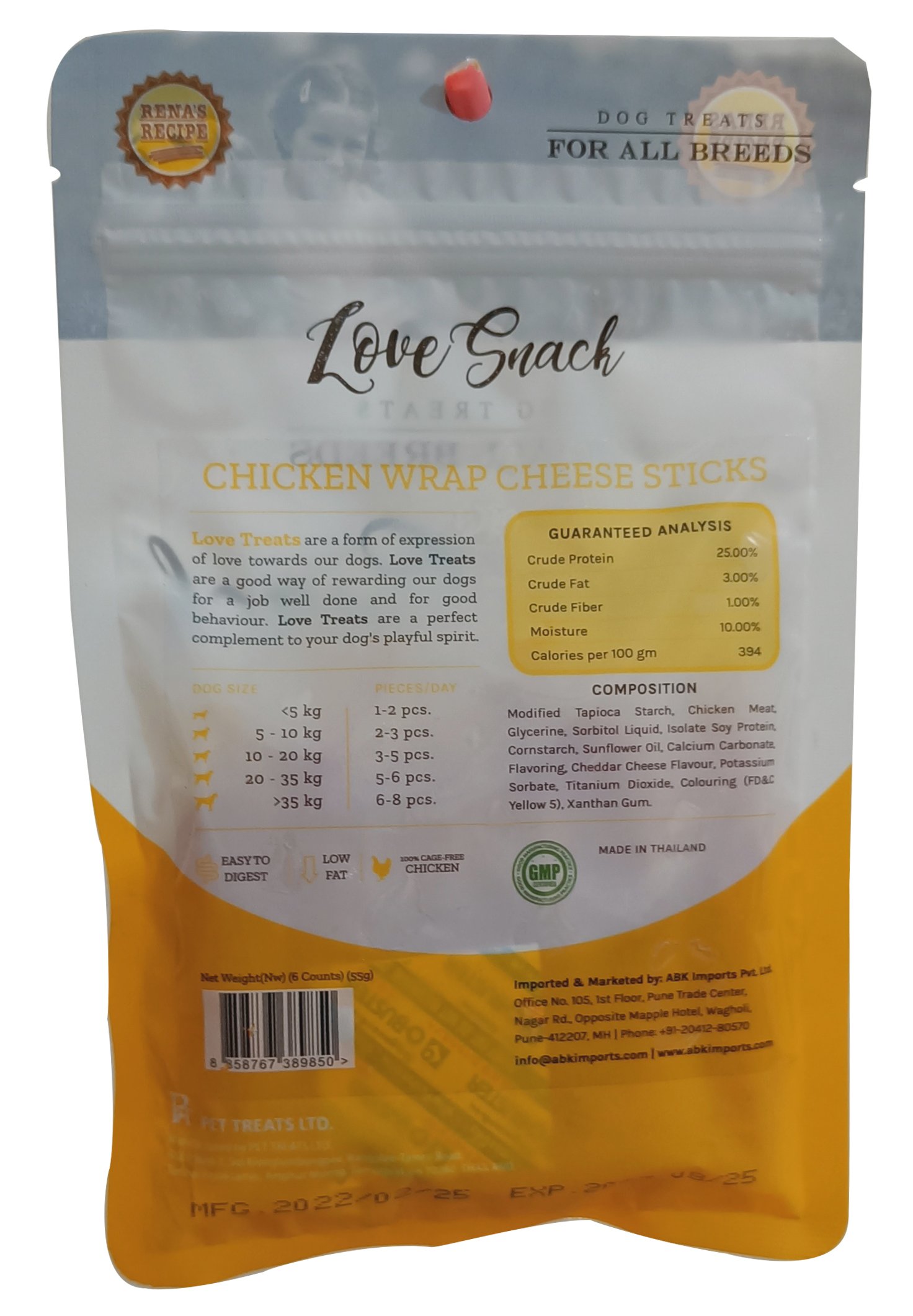 Rena's Love Snack Chicken Wrap Cheese Sticks Dog Treat is a delicious and crispy treat that contains highly digestible protein from chicken. It is packed in an airtight bag to help maintain their crunchiness. Rena's Love Chicken Wings includes up to 70% pure meat, which provides high protein and thus provide strong bones and muscles.