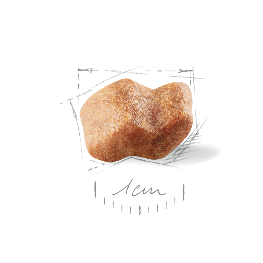 Exclusive kibble - special brachycephalic jaw : A kibble exclusively designed to make it easier for the Boxer puppy to pick up and to encourage him to chew.
