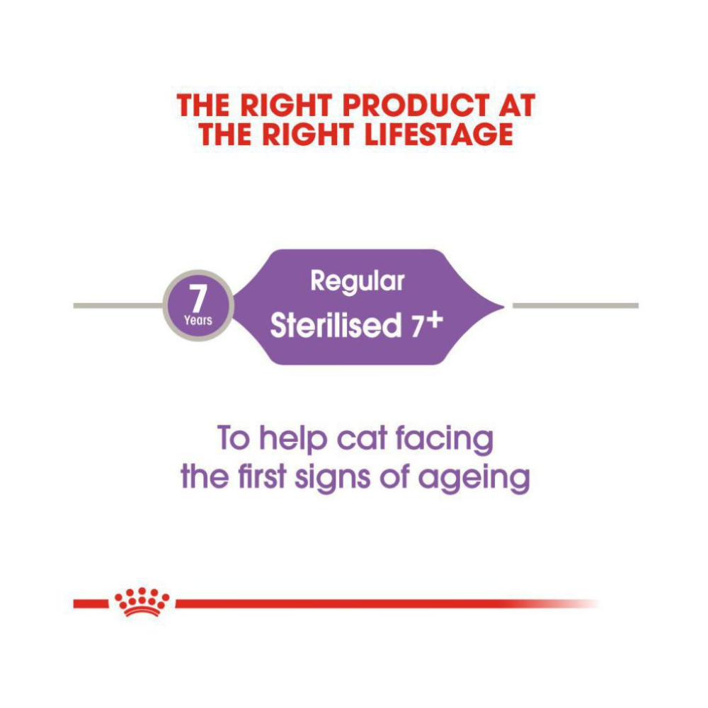 Royal Canin Sterilised 7+ is crafted for senior sterilised cats over 7 years. Its balanced formula supports healthy aging, maintains ideal weight, and promotes kidney function. With antioxidants, essential nutrients, and controlled fat levels, it helps older cats stay active, comfortable, and nutritionally supported.