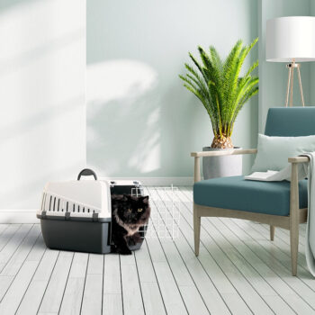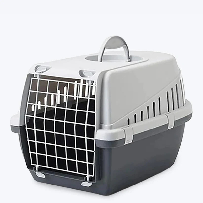 Introducing the Trotter 1 pet carrier, the ultimate travel companion for your cat or small dog. This carrier features a modern shape with a light grey upper part and a classic anthracite base, blending functionality with style to ensure your pet travels in comfort and safety. Recommended for pets weighing up to 5 kg, the Trotter 1 is perfect for both short trips and long journeys.