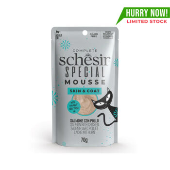 Schesir Special Skin & Coat Cat Mousse in Salmon flavor is a premium grain-free wet food designed to support your cat’s skin and coat health from the inside out. Made with high-quality salmon, it offers a rich source of Omega-3 and Omega-6 fatty acids that help reduce inflammation, promote healthy skin, and add a radiant shine to your cat's coat. The smooth mousse texture is highly palatable, making it ideal for even the fussiest eaters. Free from grains, preservatives, and artificial additives, this complete and balanced formula is suitable for cats of all life stages, including those with food sensitivities. The high protein content supports lean muscle, while added vitamins and minerals contribute to immune health, hydration, and digestive wellness. Each 70g pouch delivers perfectly portioned nutrition, great as a standalone meal or as a topper to dry food. Schesir ensures every bite supports your cat’s vitality with natural ingredients and visible health benefits.