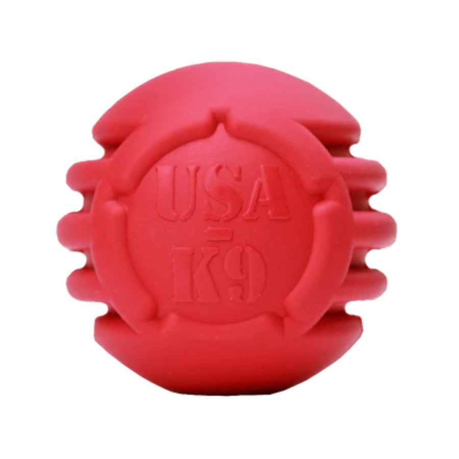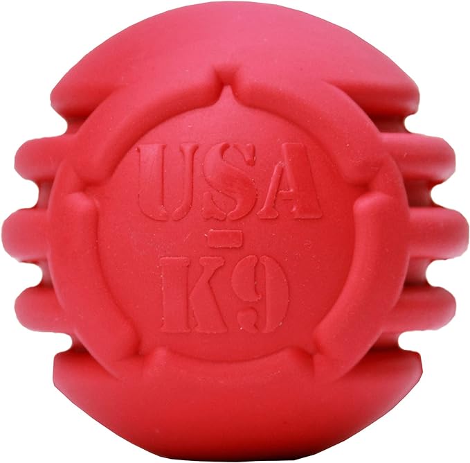 • FUN MULTIPURPOSE DOG TOY – This All-American durable rubber Stars & Stripes ball toy is great for retrieving & chewing. The ridges of the stripes design on this toy stimulate and clean your dog's teeth & gums while they chew. Large 3” diameter.