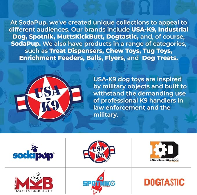 • DURABLE NATURAL RUBBER – Made from our proprietary power chewer compound called PuppyPrene, which come in 3 compounds: Original for power chewers, Puppy for teething pups, & Magnum, our signature black formula for dogs that destroy everything.