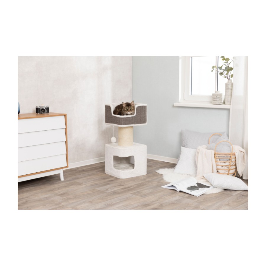 TRIXIE Ava Scratching Post XXL is the perfect get-away for your feline with a plush base Condo with removable cushion insert, machine washable. The extra-large jute scratching post gives your cats an outlet for their scratching instincts while providing a stable foundation for the large top lying platform. Suitable for cats of all ages and activity levels. Easy care cushions; gentle wash