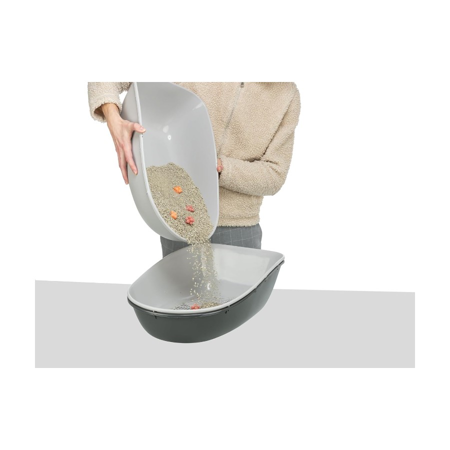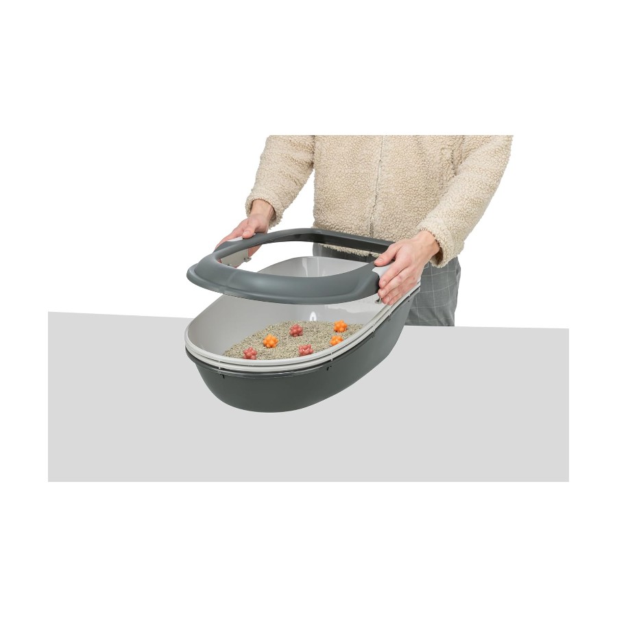 This hygienic berto litter tray from trixie is ideal for cats and can be cleaned quickly and easily. The tray consists of three parts: two trays and one sieve which are all connected by easy-click clasps, allowing the toilet connection to be opened or closed both quickly and safely. Thanks to this separate, hygienic waste system, this litter tray consumes low levels of cat litter and sand, proving both cost-effective and beneficial for your cat's health. Colour: dark grey and blue material: plastic dimensions: 39 cm x 22 cm x 59 cm (l x w x h) separate hygienic waste system low litter consumption to save sand consists of 3 parts: 2 trays and 1 sieve to make it quick and easy to clean 2 trays and 1 rim are connected with easy-click clasps
