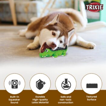 Trixie Crocodile  Latex Toy with sound Attractive in color Light-weight Fits in the mouth easily.