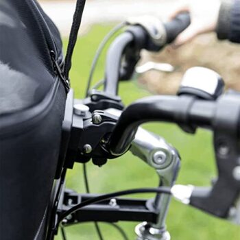 It is much more fun to jog, walk or cycle together with your best four-legged friend. In a bicycle basket, a bicycle bag or a bicycle dog trailer, it is easy to take your dog along. We offer a large choice of various models. Sporty dogs can safely run alongside your or your bike with a biker set, a bicycle or jogging leash or a belt with leash attached. The Friends on Tour Bicycle Basket is designed to fit wide bike racks between 11.8 and 16 cm. The bag can also be detached from the frame with a hook and loop system and be used as a transport bag. This bike handlebar basket is made of high-quality oxford fabric and reinforced with a padded base plate, 4 side plates and bottom metal supports. The clasp in the big main compartment can quickly attach to your pet leash and keep your pet safely inside the basket even when you're riding. The basket features a front pocket and mesh side pocket to keep your items organized, and the reflective strips to remain visible in low light. With the quick-release straps, this basket is very easy to install on your handlebar. It is perfect for cycling, shopping, pet carrying, traveling, etc. Features: Hard-wearing 600D oxford fabric for durability. With a clasp to attach to your pet leash and keep your pet securely in the box. Front flap pocket for holding your phone, keys, pet food, and more.