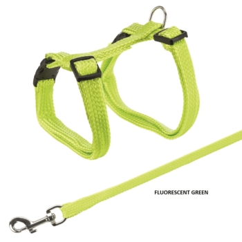 Trixie Cat Harness with Leash Nylon (25-45 cm) , Comes with 1.25 Meter Leash. The Trixie Cat harness is perfect for going for safe walks outside. The harness and leash are made of good quality nylon and has adjustable width and snap buckles for easy put on and take off. The stainless-steel D ring attaches the leash and makes you control the cat with ease.
