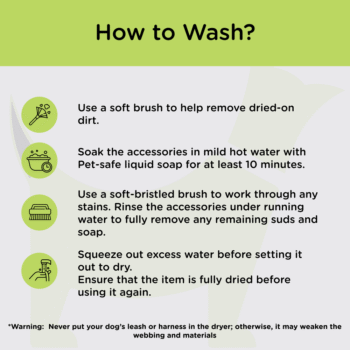 3. Handwash the product with mild soap, and not machine wash to maximize the lifespan of the product. If the product gets wet or is washed, please allow it to air dry completely before having your furry friend wear it.