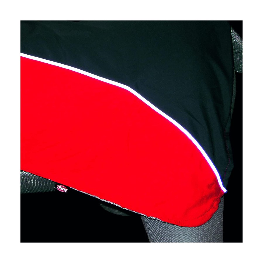 Keep your dog dry and stylish with the Trixie Tarbes Raincoat in XS size (30 cm). Crafted from transparent PVC with black piping, this waterproof raincoat shields your pet from rain and wind. It features a secure belly strap with hook-and-loop fastener for a snug fit, and a tail loop for added stability. Reflective elements ensure visibility during nighttime walks, enhancing safety. Ideal for small dog breeds, this lightweight raincoat offers both comfort and protection without restricting movement. Perfect for daily use, travel, or wet-weather outings.