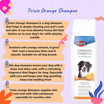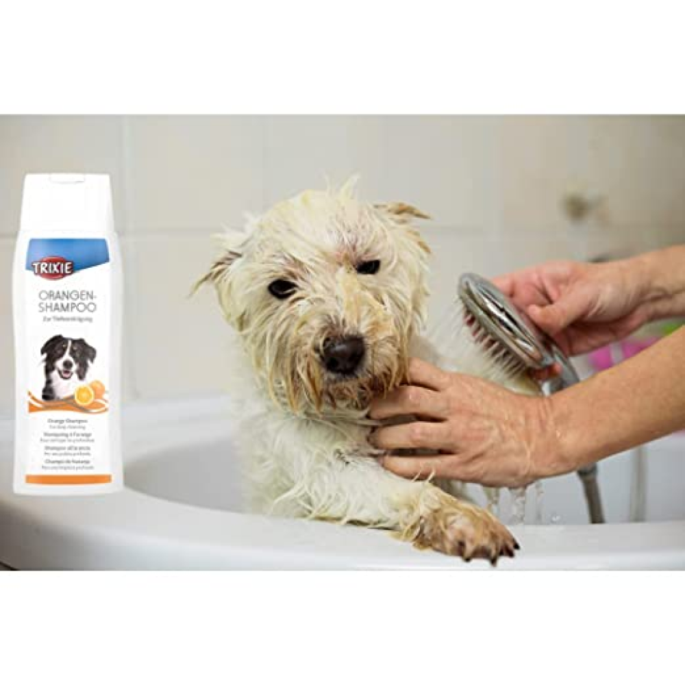 Trixie Orange Shampoo is a dog shampoo that helps in deeply cleaning your pet's coat and skin. It can even dissolve heavy dirt that latches on to your dog's fur while playing outside. Enriched with orange extracts, it gives their coat a luxurious shine and it smooth. Suitable for all dog breeds, this dog shampoo leaves your dog with a clean and shiny coat, with a refreshing fragrance that lingers for long.