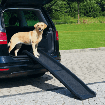 The Trixie Petwalk Folding Ramp gives your pet an alternative to jumping down from higher surfaces. Jumping down or climbing up puts pressure on their joints which can be painful for senior pets or those suffering from joint conditions. This collapsible ramp is designed to be convenient. It can be stored easily at home or in your car and be unfolded as required. It is made of plastic and so, is easy to handle. An anti-slip coating on the ramp gives your pet a firmer grip as they walk down. It can also be used for younger pets to prevent wear and tear of their joints. This ramp can be used to help your dogs get in and out of cars or other surfaces that require them to jump/climb.