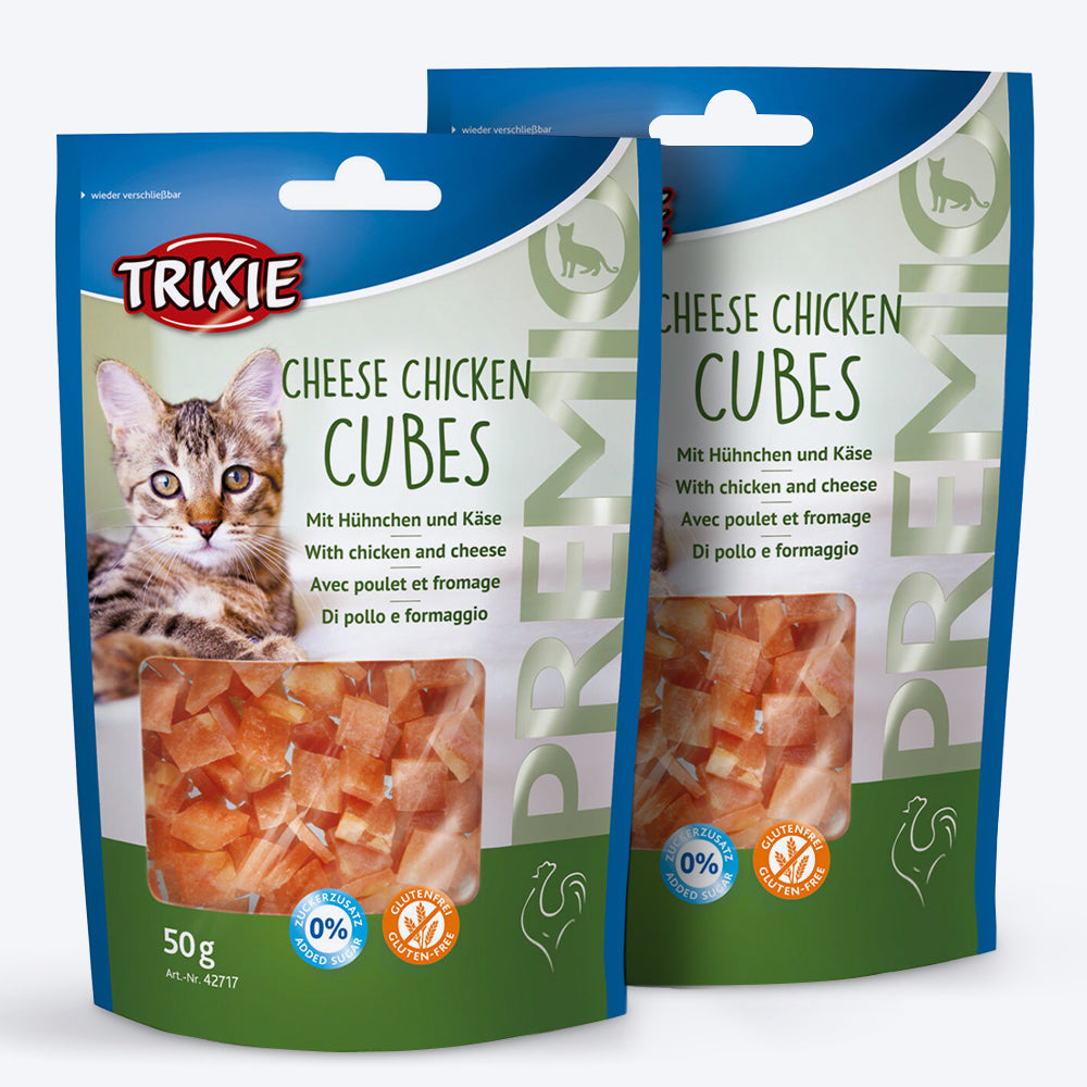 Spoil your feline companion with Trixie Premio Cat Treats. This pack of 3, each containing 50 gm of Cheese Chicken Cubes, offers a delectable snack rich in nutrients.