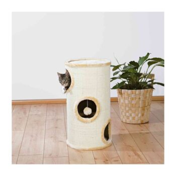 The Samuel 3-Story Cat Tower provides endless opportunities for cats to climb, scratch, and relax while owners can enjoy watching them play and explore. Felines can sharpen their claws on nearly every part of the durable sisal exterior, giving them a healthy outlet for their scratching instincts. If a nap or a place to hide is in order, the cat can crawl inside the multi-level kitty condo through one of three openings. The exterior lining of the entryways and the inside of the condo is covered in soft fleece, making it the perfect cosy retreat. Feeling a little spunky? Jump, climb or perch atop the platform and lie in wait for unsuspecting prey to pass by or simply enjoy the view. We’ve also included a dangling pom-pom toy for added appeal. Suitable for cats of all ages and activity levels. Suitable for cats of all ages and activity levels. Scratching is natural behaviour for cats, it is how they keep their claws in shape and mark their territory. Giving the cat scratchers is a good way of preventing them from scratching your furniture and doorposts
