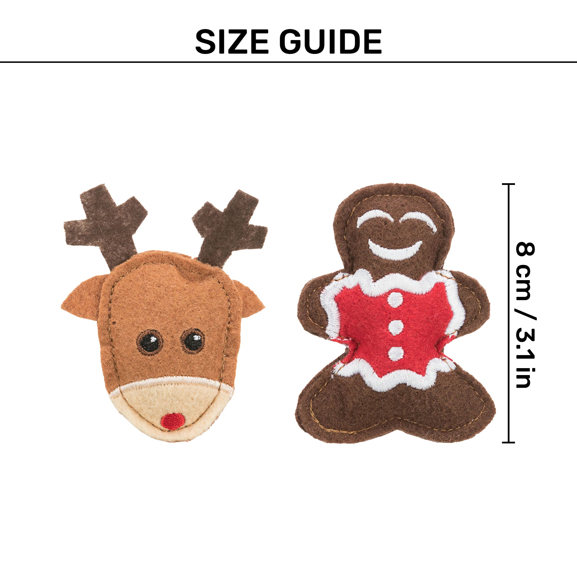 This set of 2 Trixie Xmas Elk & Gingerbread Figure Catnip Plush Toys adds festive fun to your cat's playtime with seasonal designs and catnip-infused plush. Measuring 8 cm, these toys promote exercise and interaction while providing a safe outlet for your cat's natural hunting instincts.
