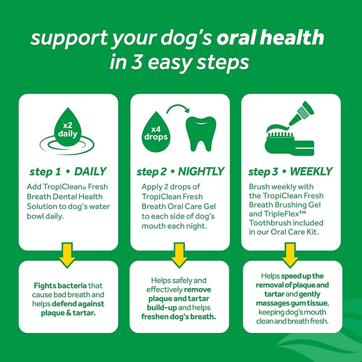 Easy to use for both you and your pet— no brushing required! Add one tablespoonful (one cap full) to your pet’s water bowl (approximately 16oz) every time you refill it.