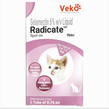 Veko Radicate Selamectin flea treatment is an effective spot-on solution that protects your cat from a variety of parasites. This treatment, formulated with Selamectin, effectively eliminates fleas, ticks, ear mites, heartworms, and certain intestinal worms.