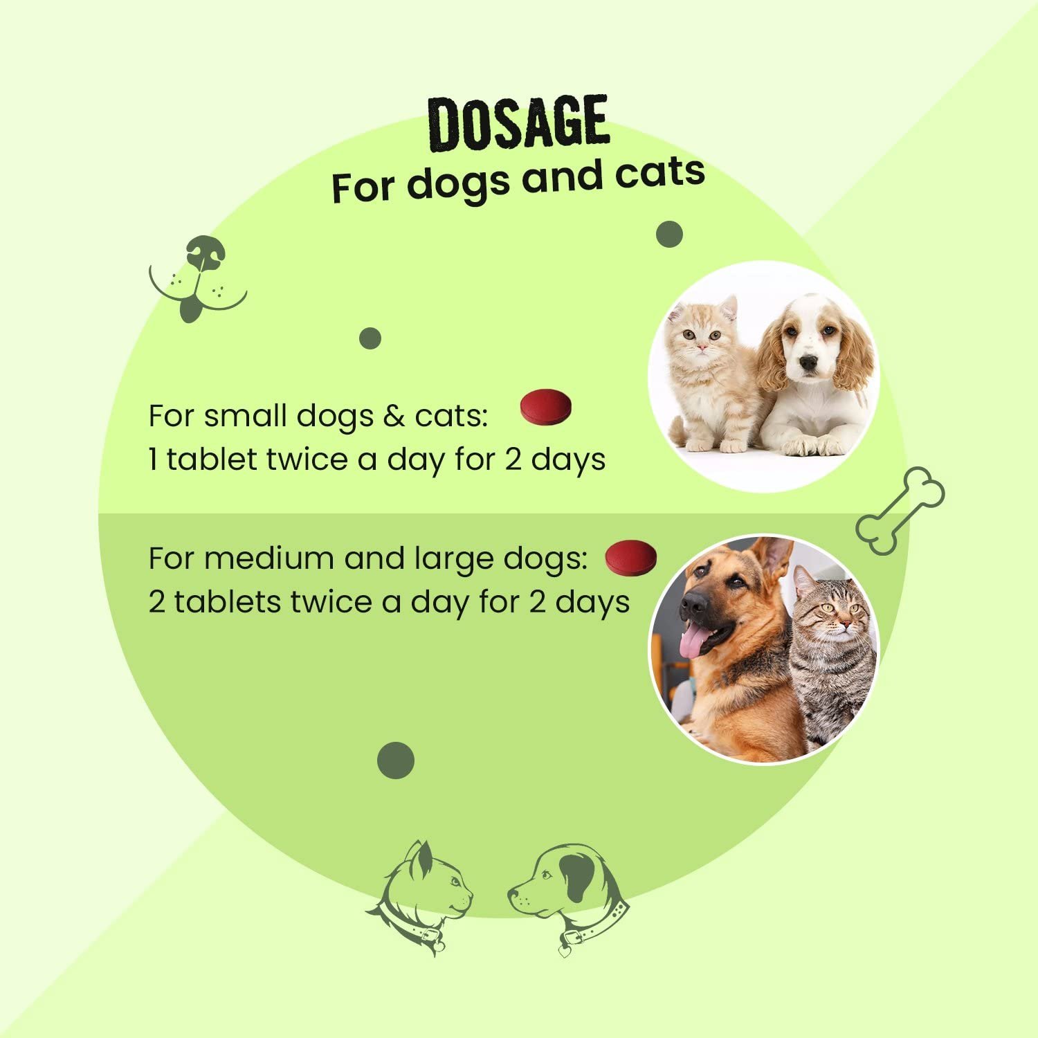 - Medium and Large Dogs: 2 tablets twice a day for 2 days.