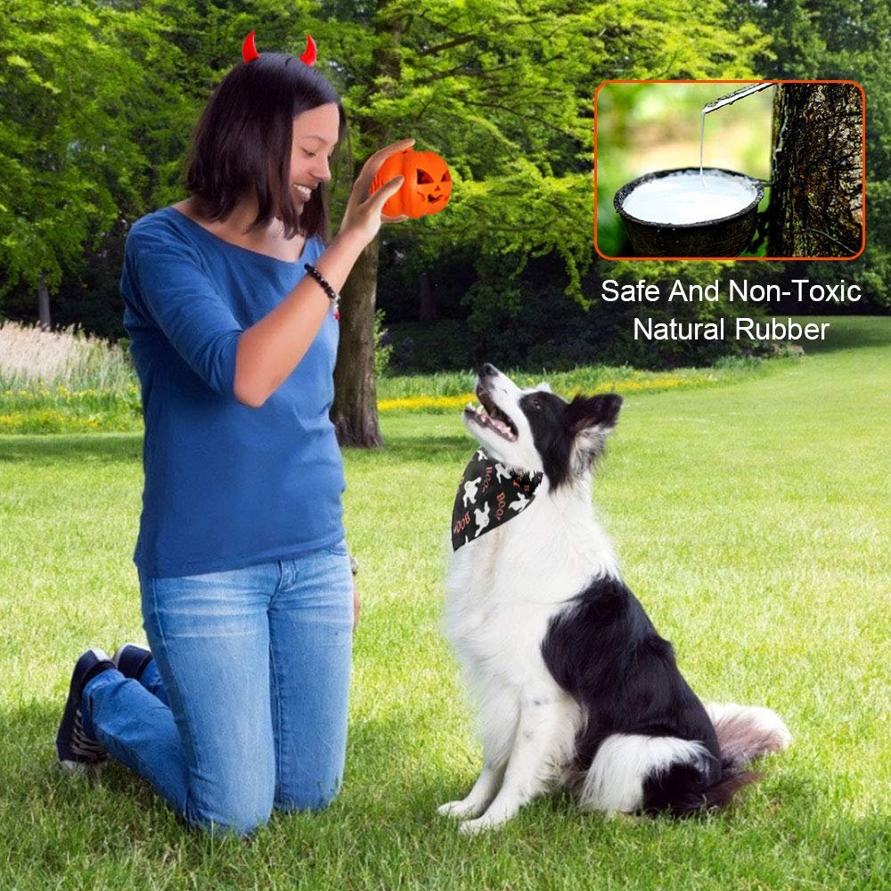 Introducing the ultimate dental health solution and playful companion for your beloved canine - the Chewing Toy Teeth Cleaning Durable Pumpkin Halloween Natural Rubber Chew Pet Dog Toy by Waggingmaster.