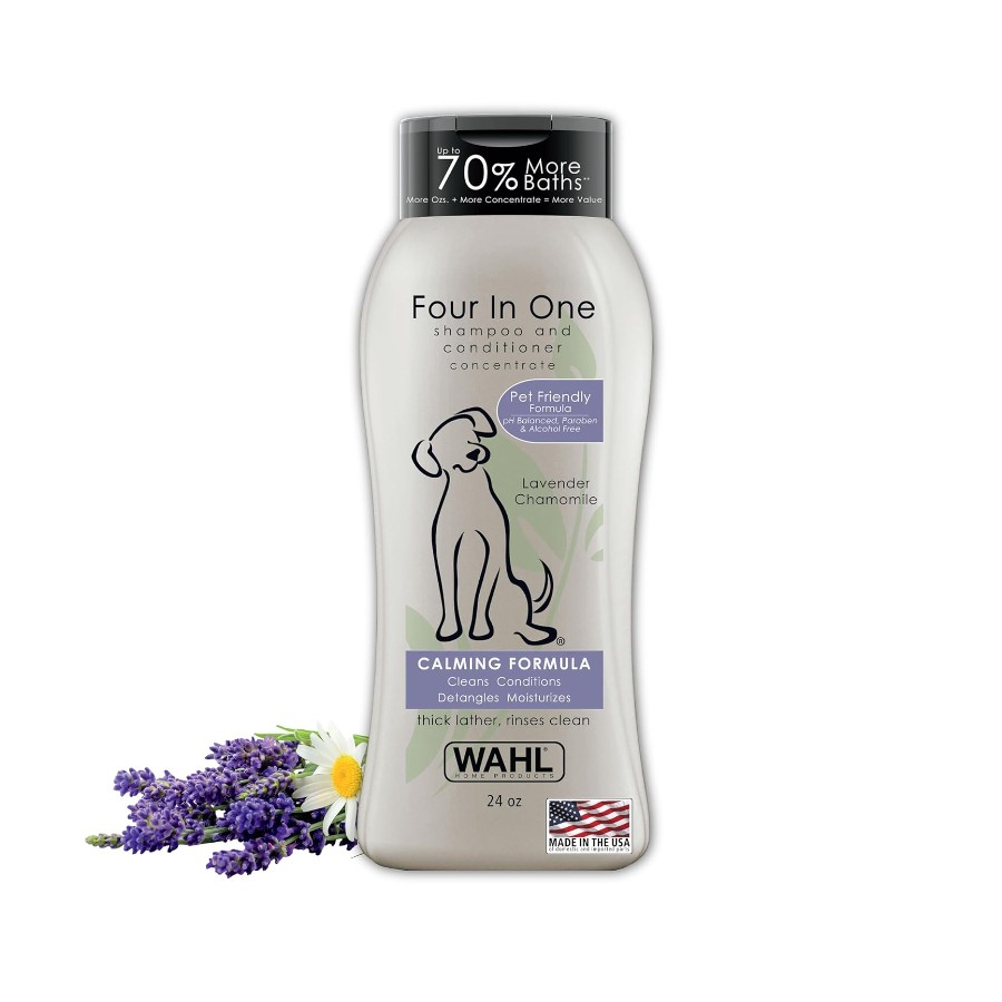 Infused with gentle yet powerful ingredients, Wahl Four in One Shampoo helps maintain your dog’s skin health while leaving the coat soft, shiny, and easy to manage. Its pH-balanced, alcohol-free, and paraben-free formula is safe for dogs with sensitive skin.